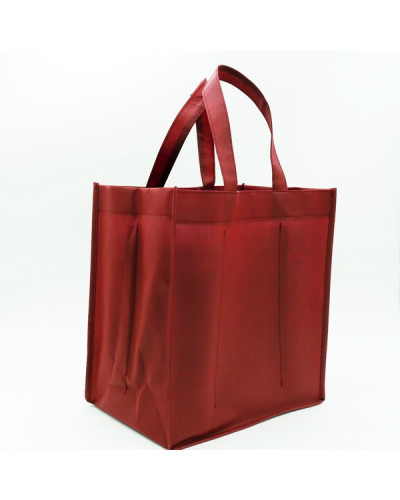 This solid TNT bag is ideal for carrying 4 (20x33x20) or 6 (28x33x20) bottles of wine. The partitions between the different compartments prevent the bottles from being damaged. The bag also includes an additional cardboard to reinforce the bottom. The bag can be folded flat.